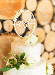 As all of Aly + Travis’ friends and family gathered together under the scenic tree canopy nestled in the woods, it was time for these two to become one as husband and wife. A beautiful touch to the ceremony decor included decorated wood signs that read,
